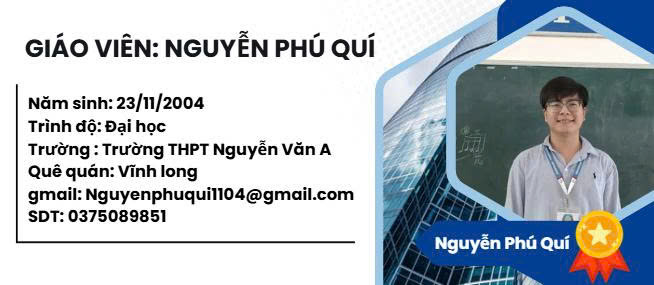 THÔNG TIN GIÁO VIÊN by Nguyễn Phú Quí - Friday, 7 November 2025, 4:49 PM Hòa đồng - Vui vẻ Permalink Discuss this topic (0 replies so far)